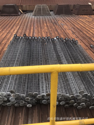 除塵器吸風(fēng)口處有一個(gè)除塵濾袋在袋口損壞,濾布完全成了黑色,由于缺少一個(gè)濾袋,造成除塵器出風(fēng)口周圍的花板上有一堆灰塵。