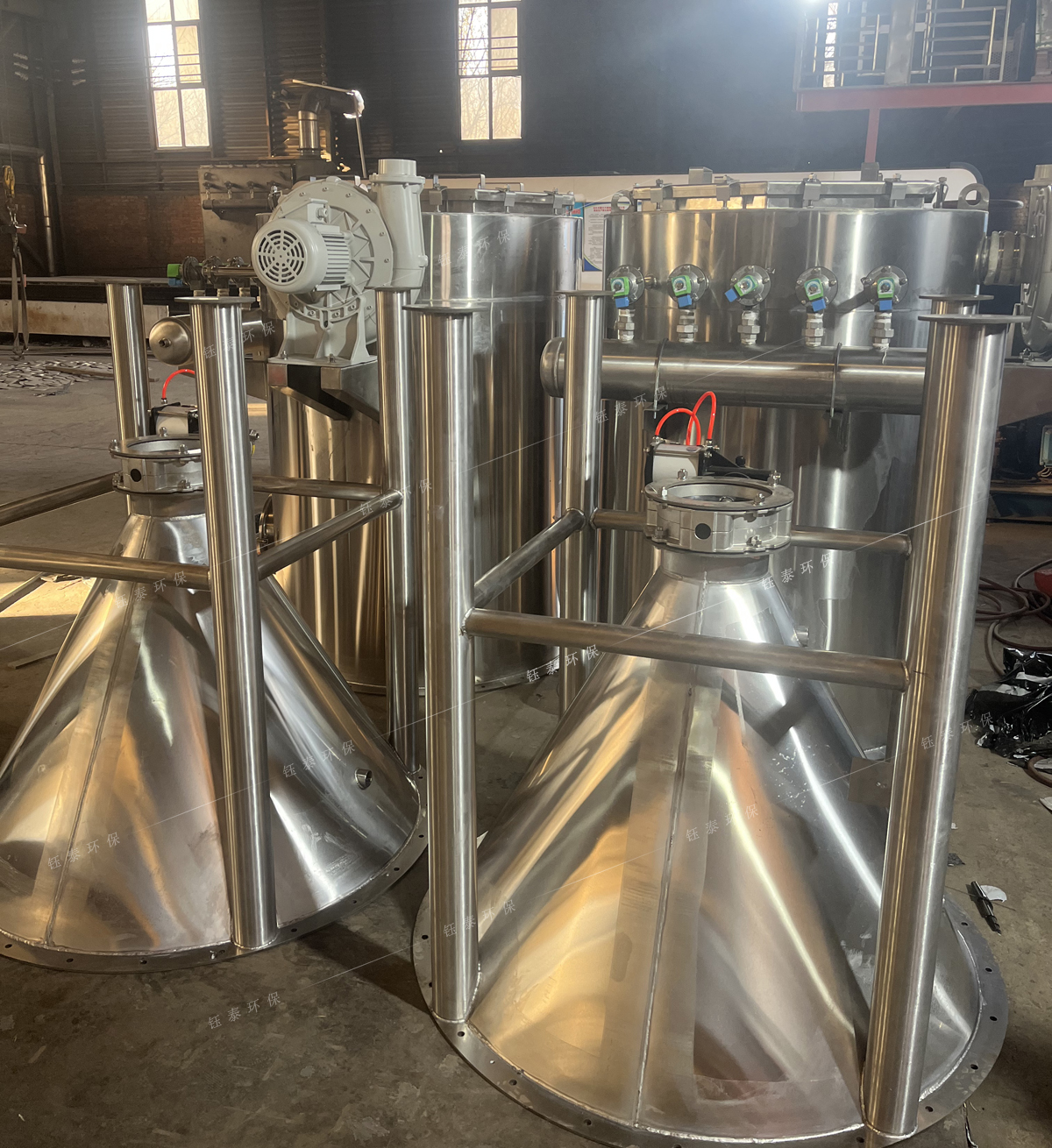 304不銹鋼圓筒布袋除塵器具有高效、安全和低維護優勢,該除塵器可應用于物料的氣力輸送系統,由于其圓柱形幾何形狀,該除塵器確保均勻的壓力分布,消除關鍵應力點并防止變形或塌陷。這種設計優化了氣流動力學,減少渦流,并提高微細粉塵分離效率,可以在封閉環境中承受高壓和確保安全。除塵器材料使用304不銹鋼制作,可以確保高耐腐蝕性并符合嚴格的衛生和工業標準,因為具有高過濾效率和耐苛刻操作條件的能力,廣泛應用于制藥、化工和食品行業。